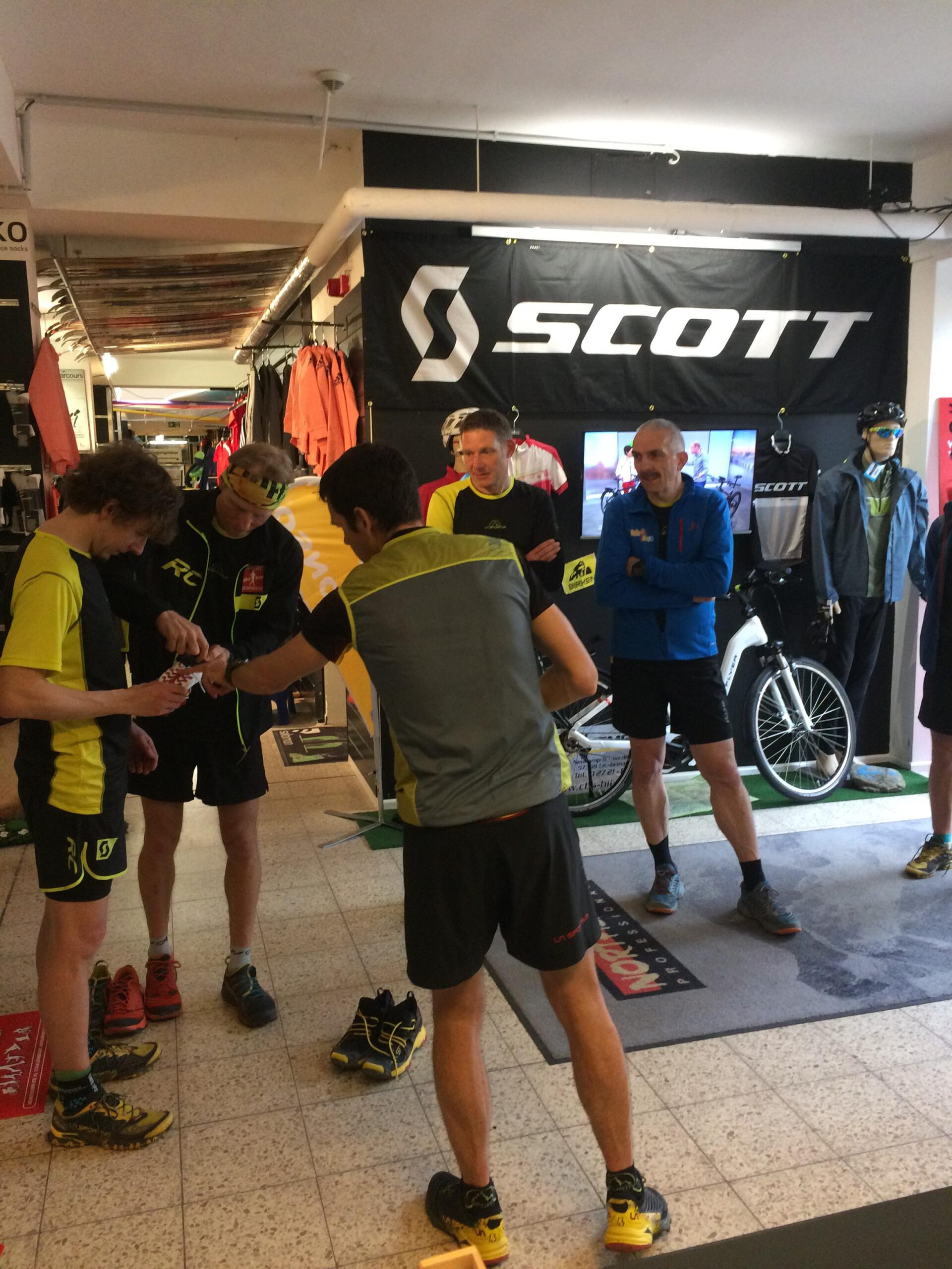 Wenn ein Weltklasse Athlet einem deutschen Marathon Meister die Schuhe bindet ist Schuhtest von La Sportiva im Sauerland bei Sport Schneider! đ